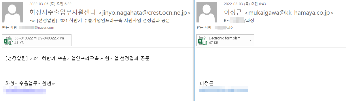 상기 이메일과 첨부파일을 확인할 경우 주의가 필요합니다.