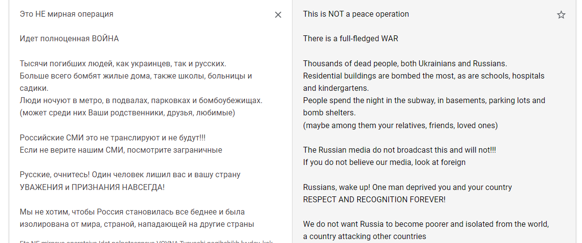 흥미로운 것은, 해당 랜섬웨어는 일반 랜섬웨어와 다르게 랜섬머니를 요구하지 않는 대신 전쟁을 멈추라는 메세지를 띄웁니다.