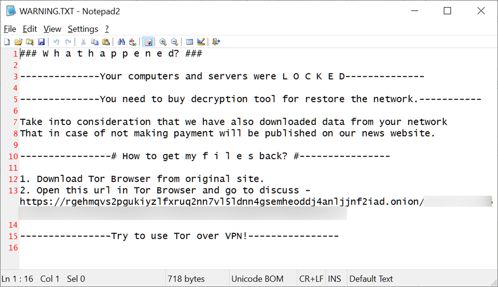Diavol 랜섬웨어가 드롭하는 랜섬노트의 이름은 README_FOR_DECRYPT.txt였지만, FBI가 지적했듯이 이는 11월부터 Warning.txt로 이름이 변경되었습니다.