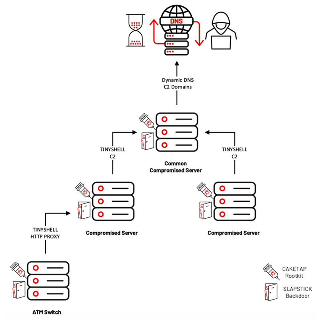 Mandiant는 피해를 입은 ATM 스위치 서버 중 하나에서 메모리 포렌식 데이터를 복구할 수 있었으며, 커널 루트킷의 한 변종을 확인 결과 카드와 PIN 확인 메시지를 가로채 훔친 데이터를 통해 ATM 터미널에서 사기성 현금 인출을 실행할 수 있는 특수한 기능이 포함되어 있었다고 밝혔습니다.