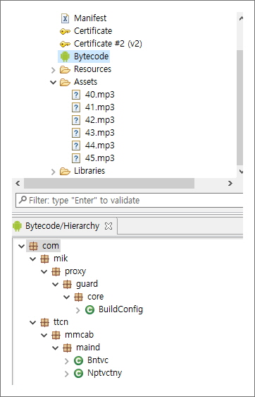 추가로 설치되는 보안 secu앱을 살펴보면 [그림 6]에서 본 것과 비슷해 보이는 클래스 목록입니다. Assets 구성이 조금 다르지만, 마찬가지로 dex 드롭을 진행하여 소스 코드를 보호하는 것을 확인할 수 있습니다.