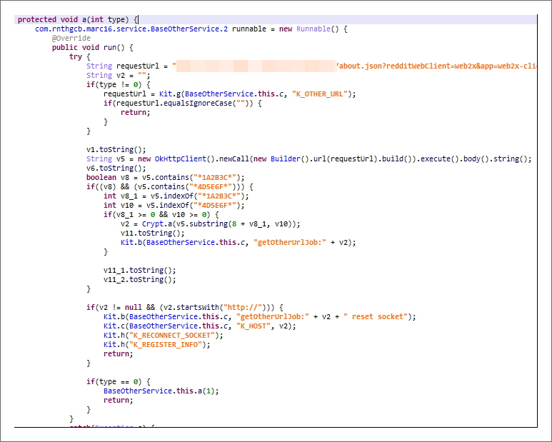 하드 코딩되어 있는 C2 주소는 연결이 안 되거나 변경될 수가 있으므로 C2를 유지하기 위해 별도의 사이트에서 불러오는 기능도 추가되었습니다.