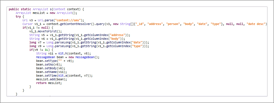 위의 소개된 기능 이외에도 각종 다양한 기능들을 수행할 수 있는데 문자, 연락처, 통화 관련된 정보들은 [그림 17]과 동일한 서버로 전송합니다.