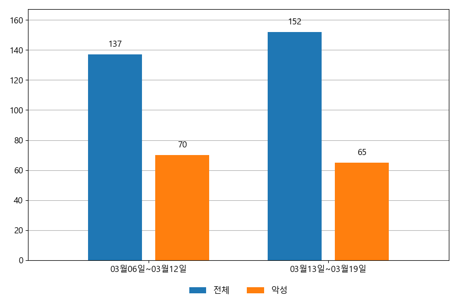 ESRC에서는 자체 운영 중인 이메일 모니터링 시스템의 데이터를 통해 이메일 중심의 공격이 어떻게 이루어지고 있는지 공유하고 있습니다. 다음은 03월 13일~03월 19일까지의 주간 통계 정보입니다.
