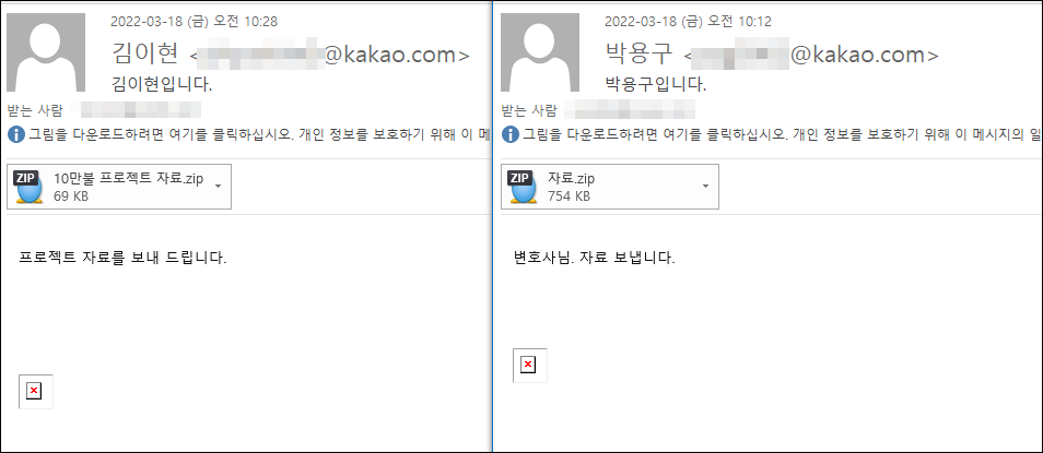 상기 이메일과 첨부파일을 확인할 경우 주의가 필요합니다.