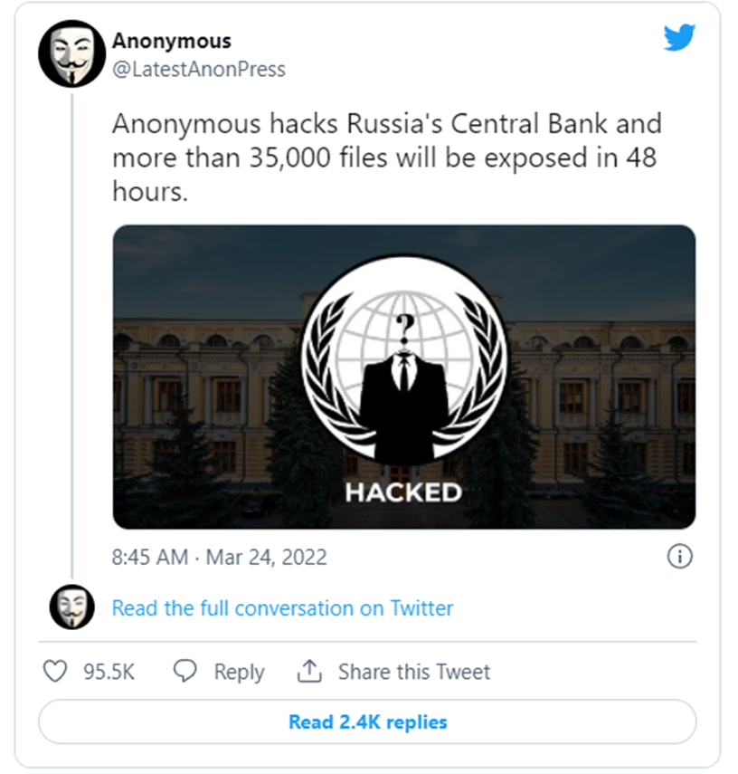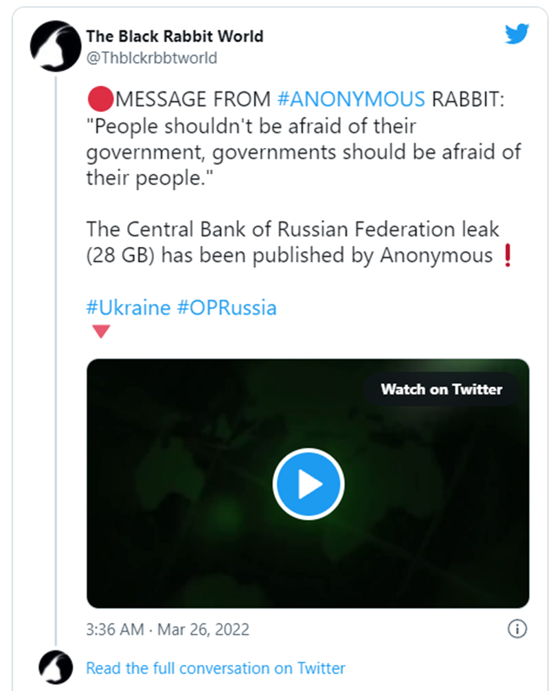 Anonymous leaked 28GB of data stolen from the Central Bank of Russia