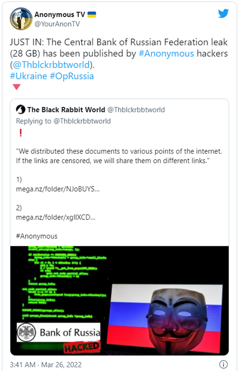 Anonymous leaked 28GB of data stolen from the Central Bank of Russia