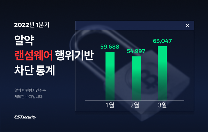 2022년 1분기, 알약을 통해 총 177,732건의 랜섬웨어 행위기반 공격이 차단된 것으로 확인되었습니다.