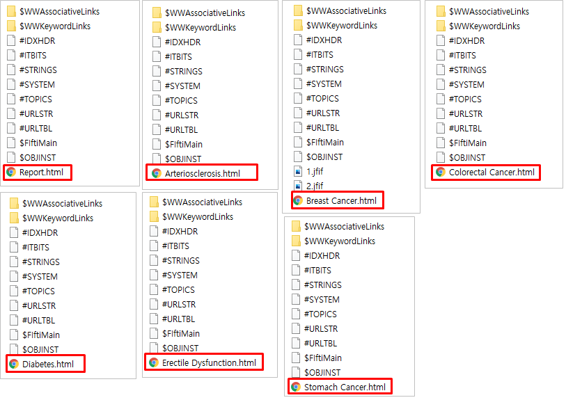 chm 파일 내부에는 아래 파일들이 들어있고 모든 chm 내부에 들어가 있는 html 파일의 코드를 확인하면 아래와 같은 스크립트가 존재합니다.