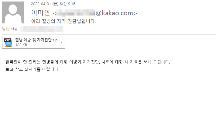 상기 이메일과 첨부파일을 확인할 경우 주의가 필요합니다.