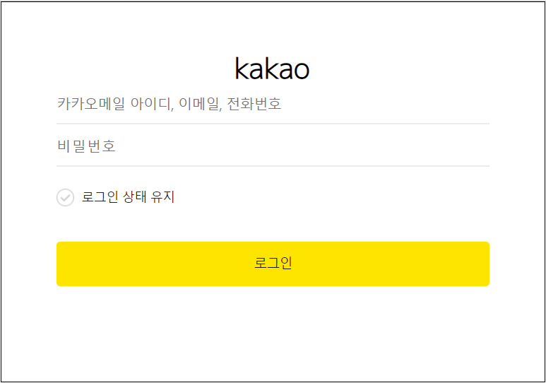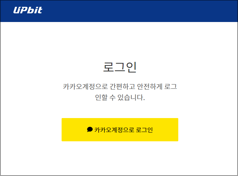 만일 사용자가 실제 업비트에서 발송된 이메일로 오인하여 [계속하려면 여기를 클릭하십시오] 버튼을 누르면 실제 업비트 로그인 페이지와 매우 유사하게 제작된 피싱 페이지로 넘어가며 카카오톡 로그인을 유도합니다.