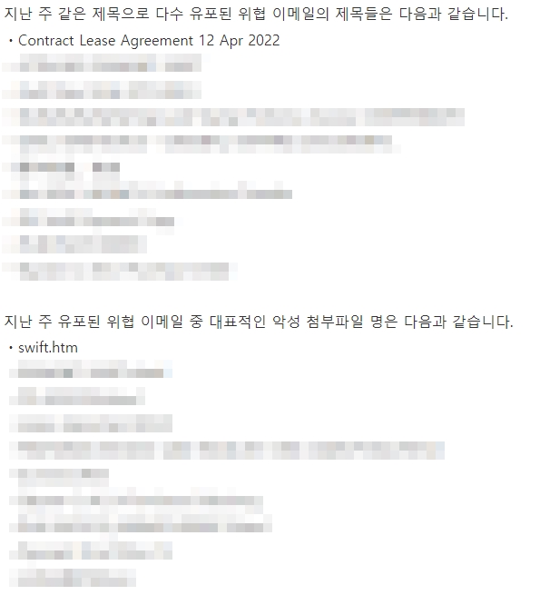 ESRC에서는 자체 운영 중인 이메일 모니터링 시스템의 데이터를 통해 이메일 중심의 공격이 어떻게 이루어지고 있는지 공유하고 있습니다. 다음은 04월 10일~04월 16일까지의 주간 통계 정보입니다.