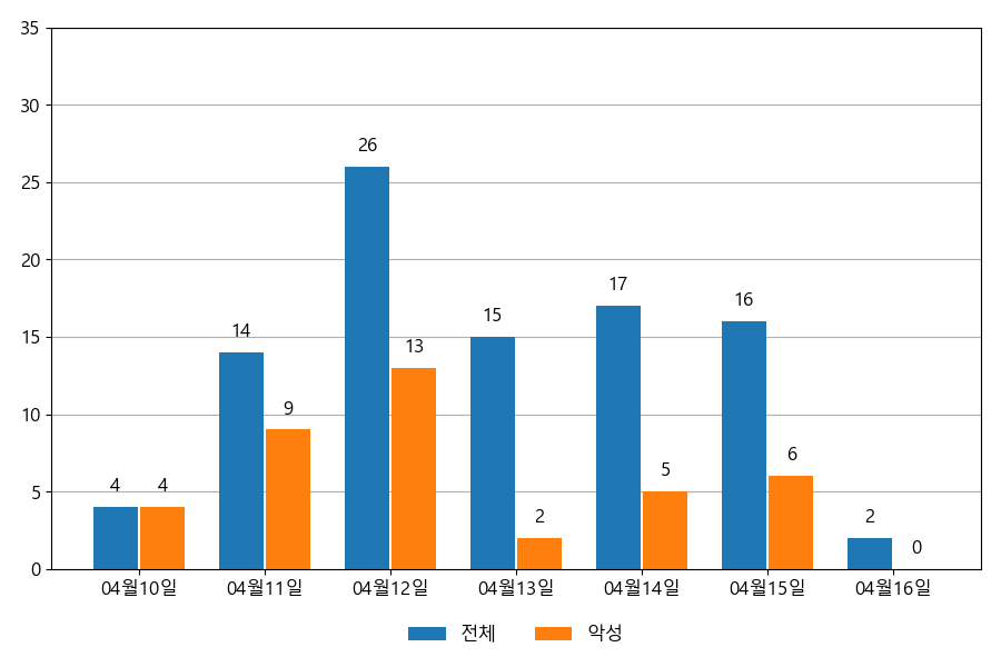 일일 유입량은 하루 최저 2건(악성 2건)에서 최대 26건(악성 13건)으로 일별 편차를 확인할 수 있습니다.