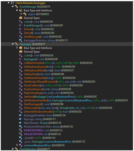 키로거는 원격 악성코드 운영자가 모든 키 입력을 기록해 대규모 정보 도용을 수행할 수 있도록 하는 또 다른 추가 모듈입니다.