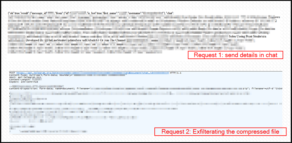 압축된 데이터는 원격 서버에 모든 것을 전달하기 위해 보안 암호화된 네트워크 연결을 사용하는 Telegram 봇을 통해 수행합니다.