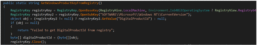 이후 데이터를 유출시키기 전 실행 중인 프로세스 열거를 통한 관련된 전체 시스템 프로파일링 작업 수행, 요약 스크린샷 촬영 후 이를 호스트 시스템에서 사용되는 네트워크 크리덴셜 및 Windows 제품 키와 번들로 묶습니다.
