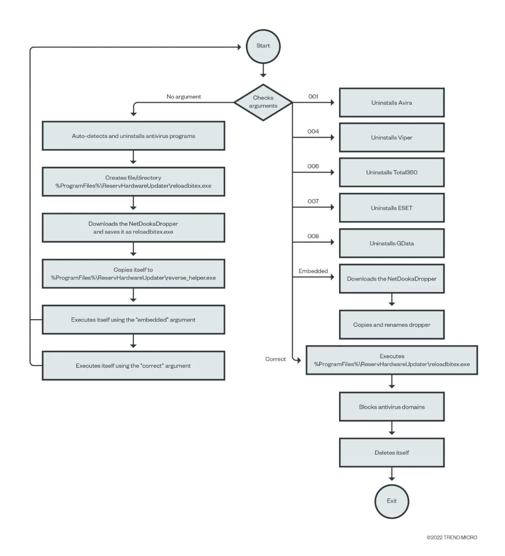 NetDookaRAT라 명명된 이 백도어는 타깃 장치에서 명령을 실행하고, DDoS 공격을 수행하고, 파일에 접근 및 이를 전송하고, 키 입력을 기록하고, 페이로드 추가 다운로드 및 실행이 가능한 다양한 기능을 갖춘 것으로 유명합니다.
