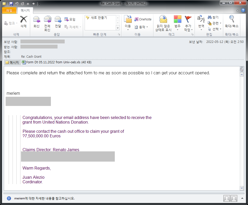 사용자 여러분들께서는 알약과 같은 신뢰할만한 백신을 사용하시고, 수상한 이메일 열람 및 문서 파일 실행 시 [콘텐츠 사용] 기능 활성화를 지양하시기를 당부 드립니다.