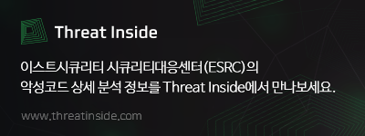 안녕하세요? 이스트시큐리티 시큐리티대응센터(이하 ESRC)입니다.