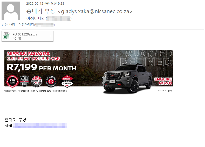 상기 이메일과 첨부파일을 확인할 경우 주의가 필요합니다.
