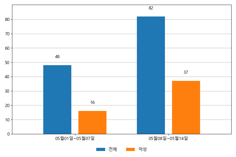 ESRC에서는 자체 운영 중인 이메일 모니터링 시스템의 데이터를 통해 이메일 중심의 공격이 어떻게 이루어지고 있는지 공유하고 있습니다. 다음은 05월 08일~05월 14일까지의 주간 통계 정보입니다.