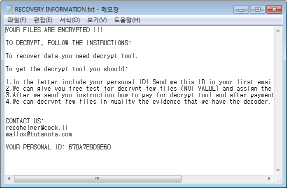 현재까지 국내에 감염된 사례는 보고된 적 없지만 봇넷, 네트워크 유포, 취약한 암호 등 다양한 방식을 통해 유포 중인 것으로 알려진 Mallox 랜섬웨어를 분석하고자 합니다.