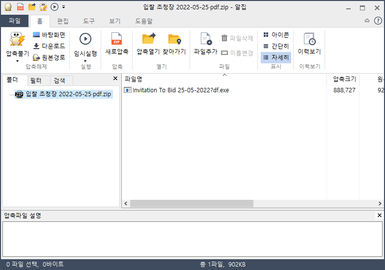첨부되어 있는 압축파일 내에는, pdf 파일을 위장한 실행파일(.exe)이 포함되어 있습니다.