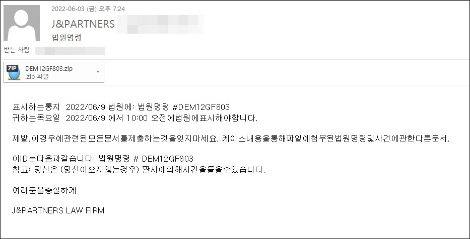 | '법원명령' 제목으로 유포중인 피싱 메일 주의! (0) | 2022.06.07 |