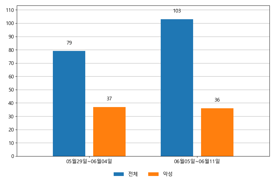 ESRC에서는 자체 운영 중인 이메일 모니터링 시스템의 데이터를 통해 이메일 중심의 공격이 어떻게 이루어지고 있는지 공유하고 있습니다. 다음은 06월 05일~06월 11일까지의 주간 통계 정보입니다.