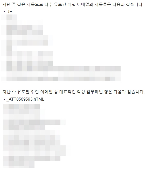 이번주 Pick으로는 몇년간 꾸준히 유포 중인 Phishing 이메일을 선정했습니다. 특히 ESRC에서는 21년 말에도 유사한 피싱 메일에 대해 주의를 당부한 바 있습니다. 자세한 내용은 다음 글을 확인하시기 바랍니다.
