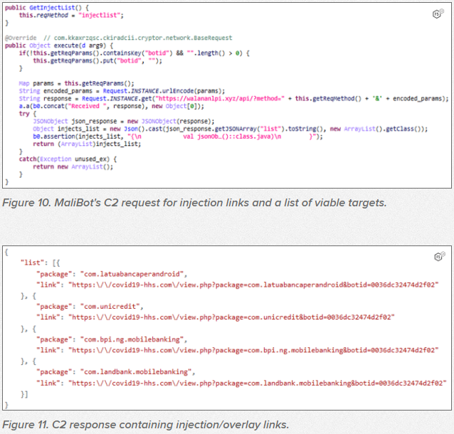 MaliBot은 전자 뱅킹 서비스 크리덴셜, 암호화 지갑 패스워드, 개인 정보 등과 같은 금융 관련 정보를 훔치는 데 집중하며, 알림에서 2단계 인증 코드를 빼낼 수도 있습니다.