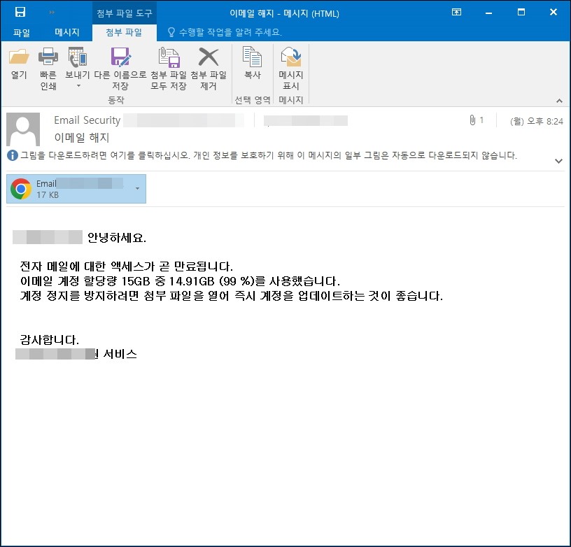 상기 이메일과 첨부파일을 확인할 경우 주의가 필요합니다.