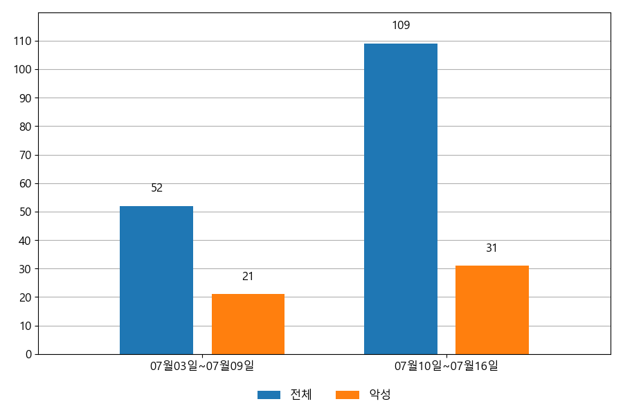 ESRC에서는 자체 운영 중인 이메일 모니터링 시스템의 데이터를 통해 이메일 중심의 공격이 어떻게 이루어지고 있는지 공유하고 있습니다. 다음은 07월 10일~07월 16일까지의 주간 통계 정보입니다.