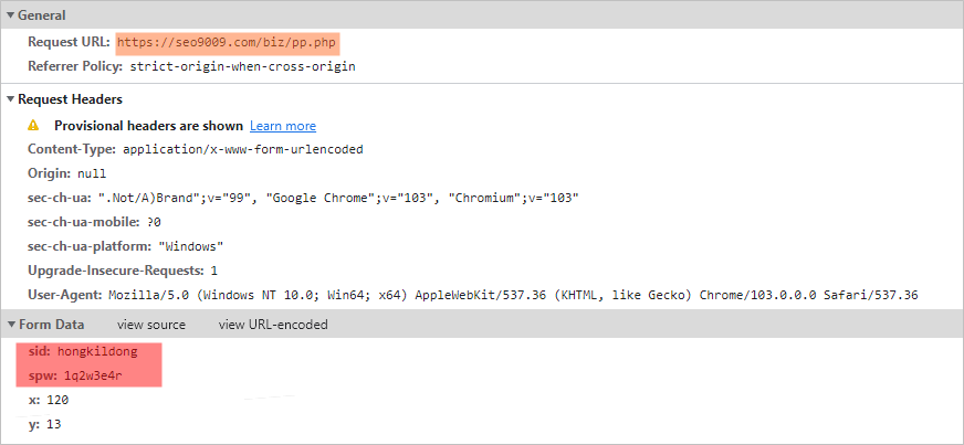 만일 사용자가 해당 란에 계정정보를 입력하면 공격자 서버로 전송되고 공격은 종료됩니다.