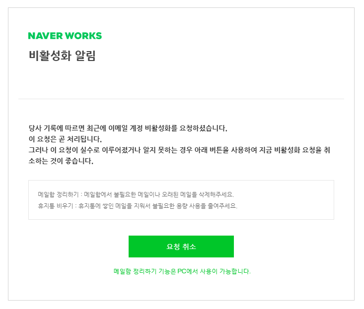 견적서를 위장한 메일 뿐만 아니라, 계정 비활성화 알림을 위장한 피싱 메일도 유포 중이며, 디자인과 방식을 보았을 때 지금도 지속적으로 다양한 주제를 위장하여 유포중인 네이버 계정탈취를 시도하는 피싱 메일과 매우 유사합니다.