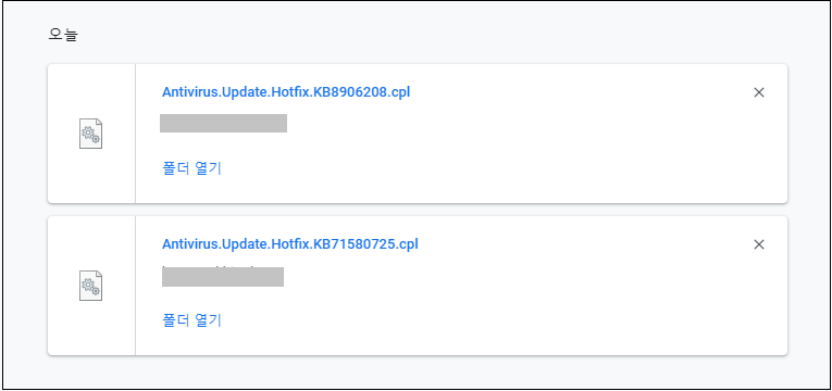 공격자들은 어제는 파일명을 Security.Upgrade.Hotfix.Cloud.cpl로, 금일에는 Antivirus.Update.Hotfix.KB[랜덤8자리숫자].cpl로 지속적인 수정중에 있습니다.