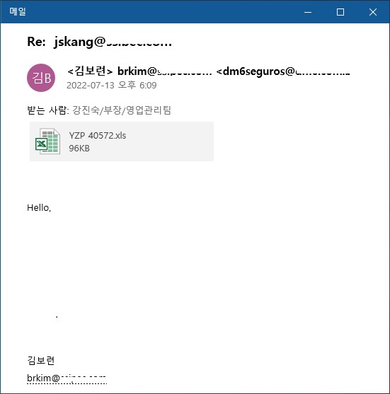 Emotet 악성코드는 감염자의 민감한 개인정보 탈취는 물론 감염자의 이메일에서 수집한 정보를 바탕으로 해서 사회공학적 기법의 피싱메일을 발송하므로 감염자의 주변 관계인들에까지 피해를 유발할 수 있는 아주 위험한 악성코드이므로 각별한 주의가 필요합니다.
