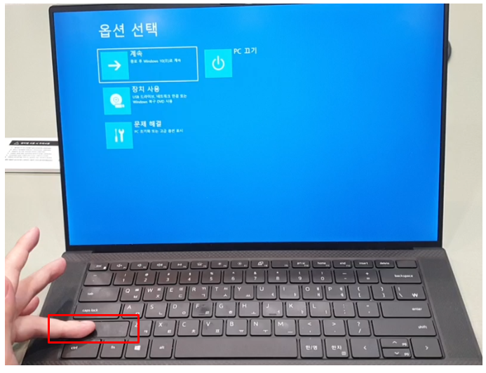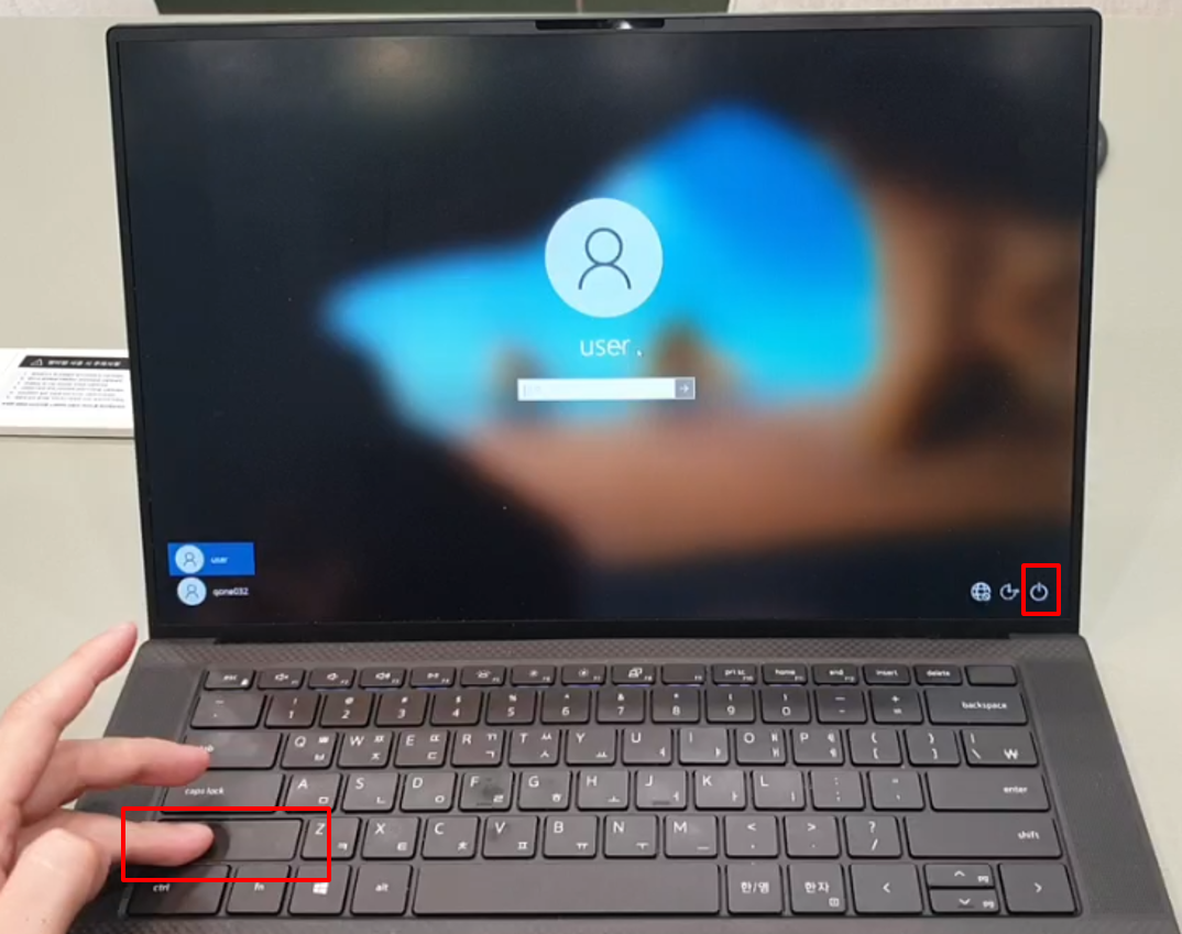 ① 키보드의 SHIFT 를 누른 상태로 전원 아이콘을 마우스 클릭합니다.