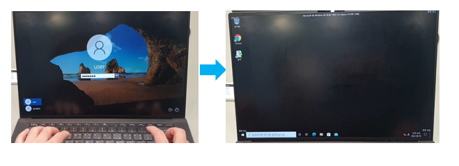 ③ 키보드의 SHIFT 를 누른 상태로 약 30초 ~ 1분간 기다리면 윈도우 로그인화면이 검은 화면으로 암전 되었다가 아래 화면으로 변경됩니다.
