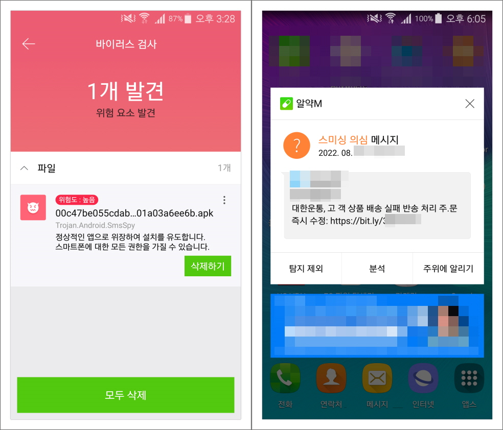 [그림 4] 스미싱 악성 앱 탐지 화면
