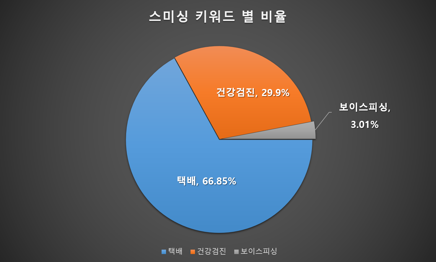 다음 그림은 스미싱 키워드 별 발견 비율을 보여주고 있습니다.