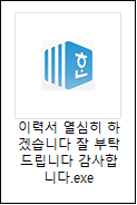 ESRC에서는 지속적으로 입사지원서 및 저작권 관련 내용으로 유포되는 랜섬웨어에 대해 주의를 당부한 바 있으며, 이번에 발견된 랜섬웨어 역시 '이력서 열심히 하겠습니다. 잘부탁드립니다'라는 파일명과 함께 한글파일 아이콘을 위장한 실행파일로 사용자의 실행을 유도합니다.