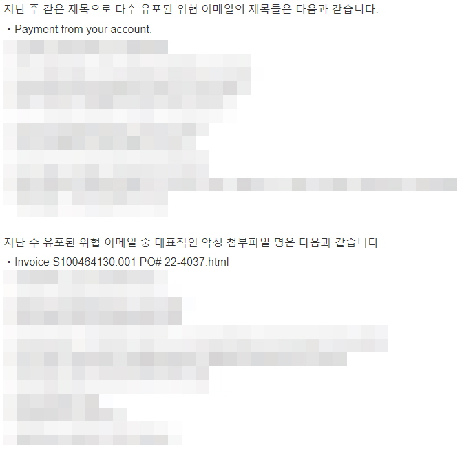 4. 대표적인 위협 이메일의 제목과 첨부파일 명