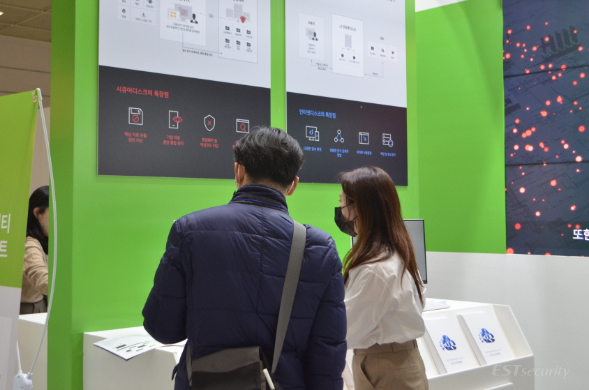 이스트시큐리티 부스에서는 문서중앙화 솔루션인 시큐어디스크, 인터넷디스크와 위협 대응 솔루션 알약 EDR, Threat Inside를 선보였으며, 다양한 기업 및 기관에서 부스에 방문해 관심을 보여주셨습니다. 부스 내에서는 제품 질문과 상담, 자료 요청이 쇄도하는 등 많은 주목을 받았습니다.