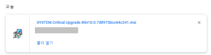 공격자들은 'SYSTEM.Critical.Upgrade.Win10.0.16자리 랜덤 문자열' 파일명을 가진 .msi 파일을 내려주어 사용자들의 실행을 유도합니다.
