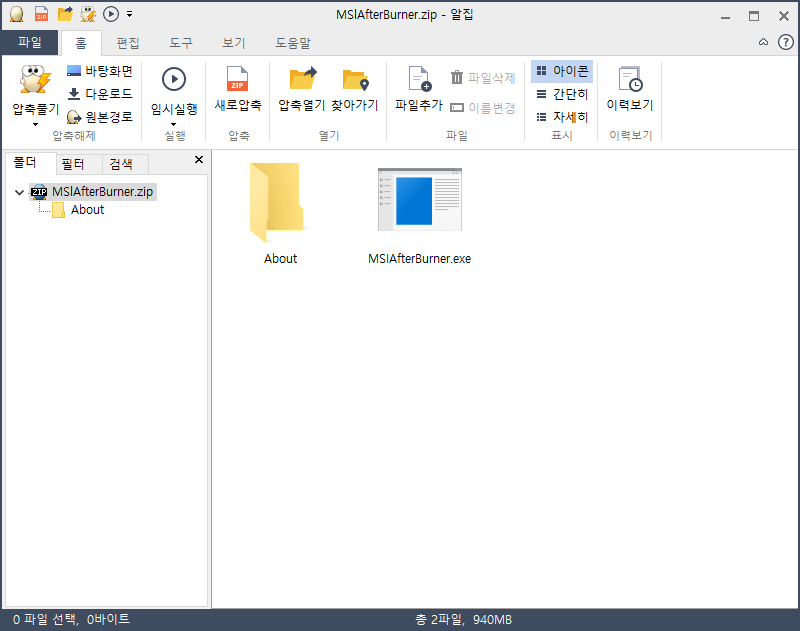 다운로드 버튼을 클릭하면 'MSIAfterBurner.zip' 파일명의 압축파일이 다운로드 되며, 내부에는 exe 파일이 포함되어 있습니다.