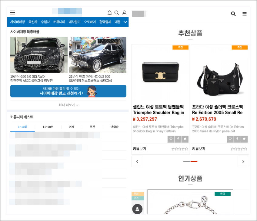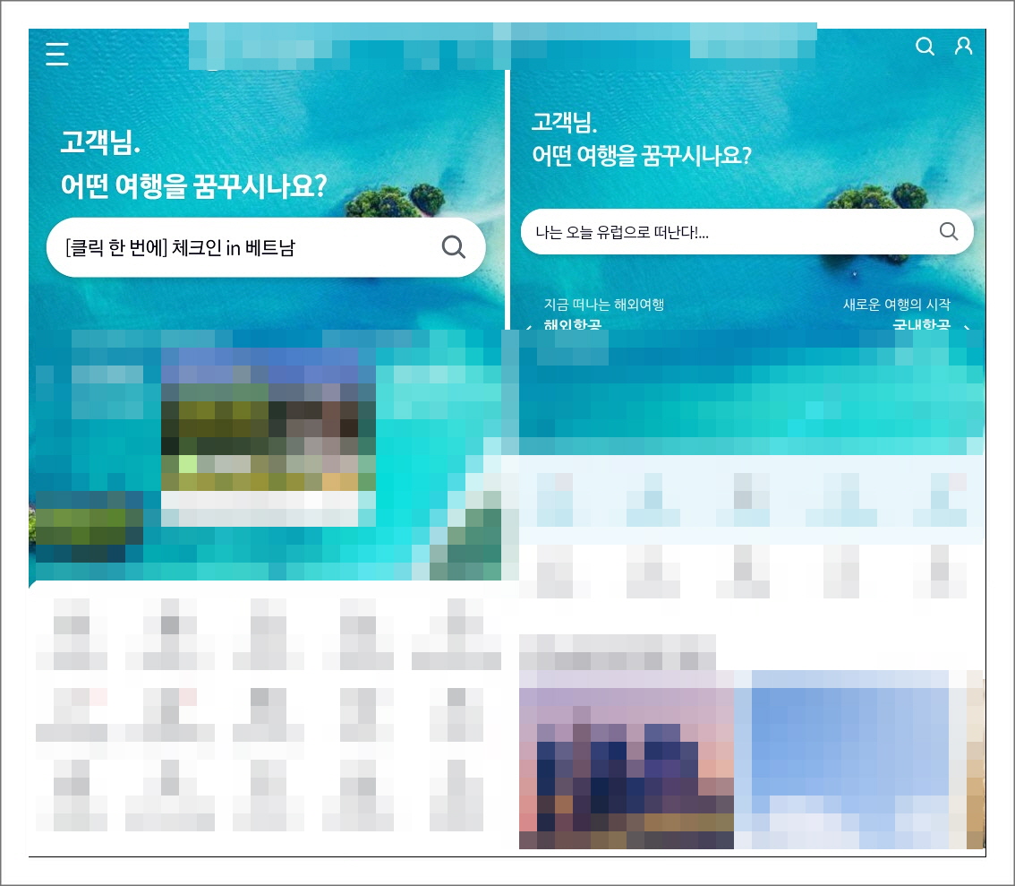 안내에 따라 웹 페이지에서 앱을 내려받은 후 설치하면 [그림 2]와 같은 화면을 볼 수 있습니다. 오른쪽이 사칭 앱이며 실제(왼쪽) 앱과 유사한 것을 확인할 수 있습니다. 다양한 메뉴들이 보이지만 제대로 작동하는 것은 없고 클릭 시 로그인 페이지로 넘어갑니다.
