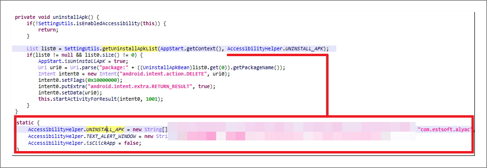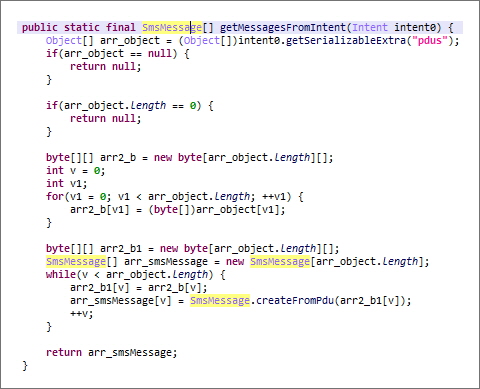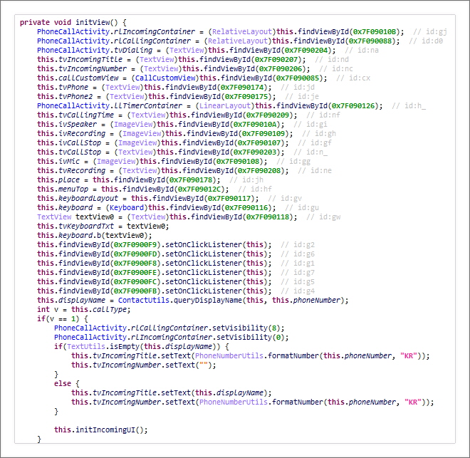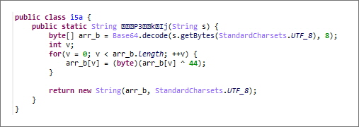 앱 분석 시 모든 문자열은 [그림 19]와 같이 난독화 처리가 되어 있습니다.
